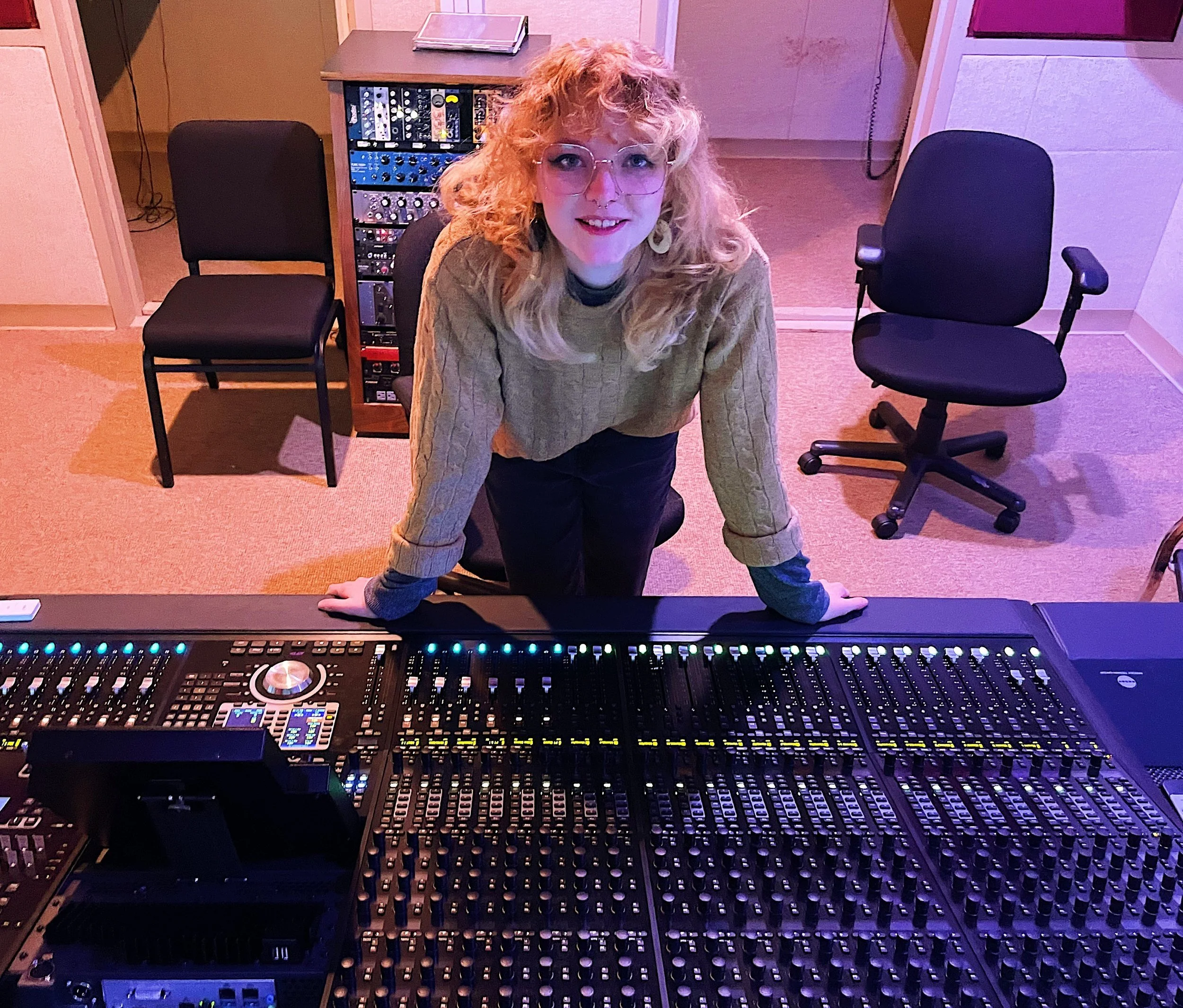 From 2020 to 2024, Natalie attended Appalachian State University and received a degree in Music Industry Studies with a concentration in Recording and Production. During her time at App State, she learned at RFG Studios, a multi-million dollar facility featuring multiple project and recording studios. She worked for the studio in roles such as a Concert Recording staff member, Manager and Lead Engineer for Live @ RFG, and in the summer of 2022 worked with a team of other classmates to install and operate a Dolby Atmos studio and an Avid S6 console.